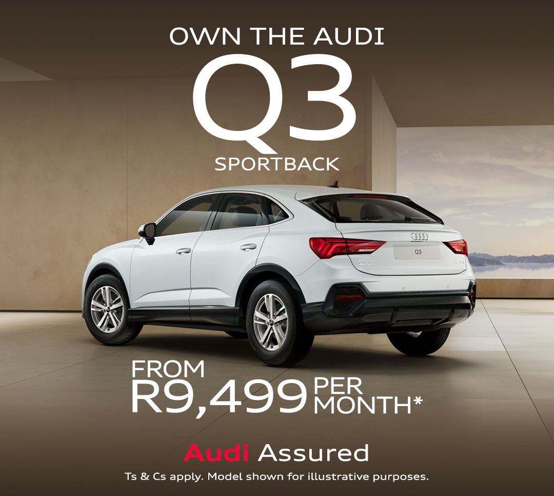 Stand out from the crowd with the Audi Q3 Sportback from R 9,499 pm* and backed by Audi Assured’s Guaranteed Future Value.